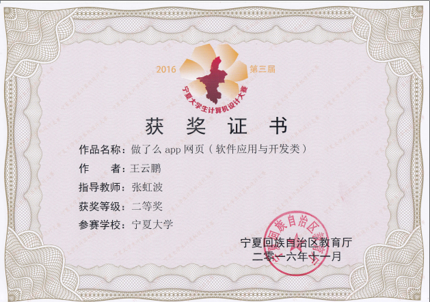 【信工学院团委讯徐璐通\文 宝亚飞\图】近日,“2016年第三届宁夏大学生计算机软件大赛”圆满落幕。此次比赛由宁夏教育厅主办、宁夏师范学院承办。
